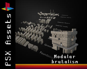 Low-poly PSX style collection of 88 modular assets for creating any kind of brutalism concrete buildings. Game-ready assets including: