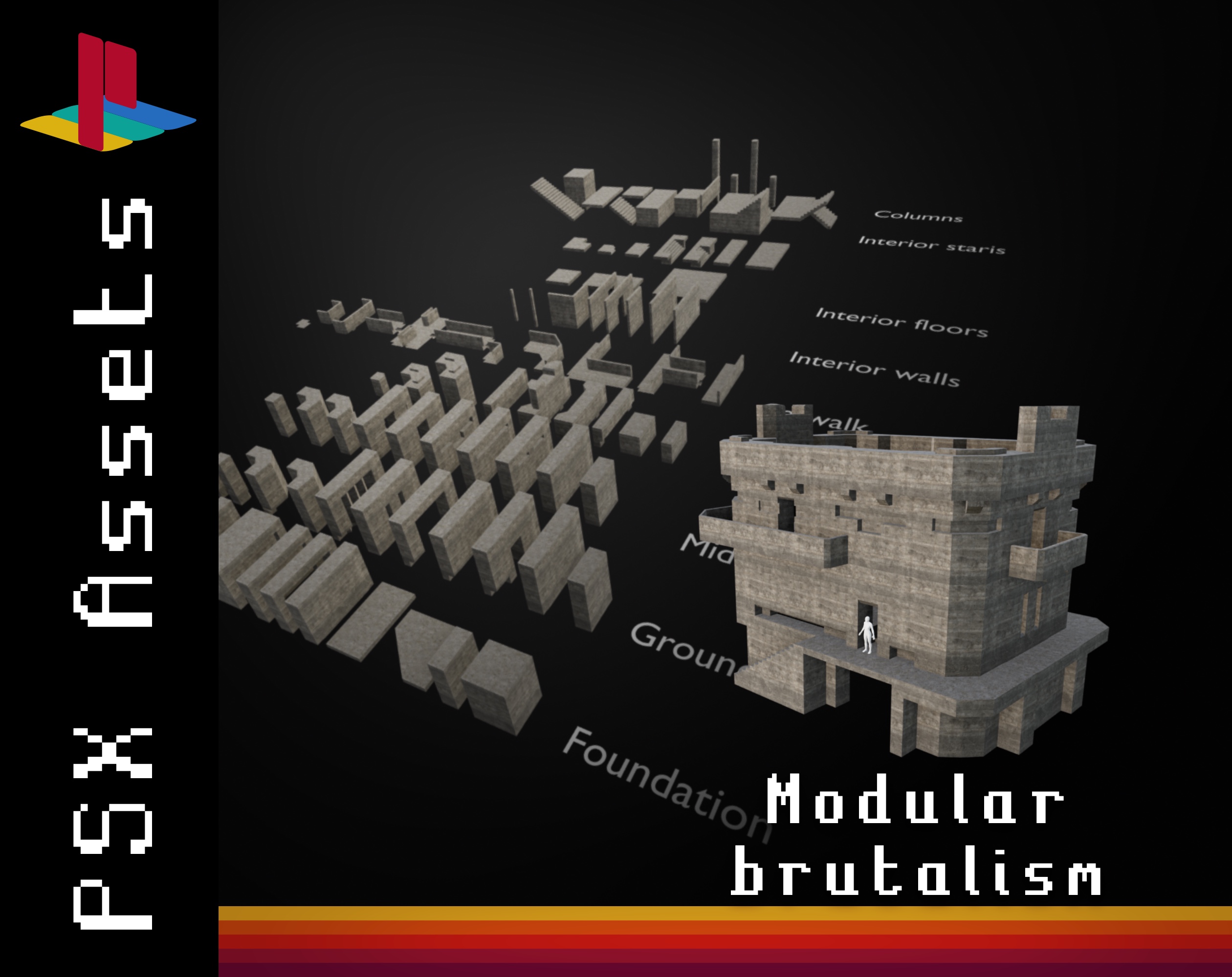 PSX Assets - Modular brutalism blocks