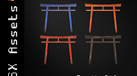 Low-poly PSX style collection of 4 game-ready assets including: Torii Gate colors Red Orange Blue Black PBR texture sets for materials: Wood with multiple colors Albedo, Ambient Occlusion, Roughness a...